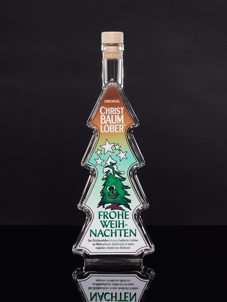 Der Christbaumlober in der Tannenbaum-Schmuckflasche ist ein ideales Geschenk zu Weihnachten und als Vorrat für das gesellige Loben des Weihnachtsbaumes.